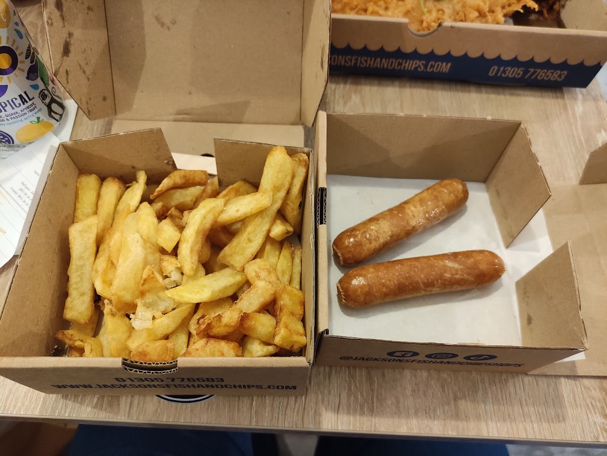Another standout is the Chips and Fishcake. Though a little on the pricier side, it’s a real treat for those looking to try something a little different. The fishcake is beautifully seasoned, and paired with the chips, it creates a comforting and satisfying meal. If you prefer something simpler, the Medium Chips with 2 Plain Sausages is another great option for a quick, no-fuss meal that doesn’t skimp on flavor.